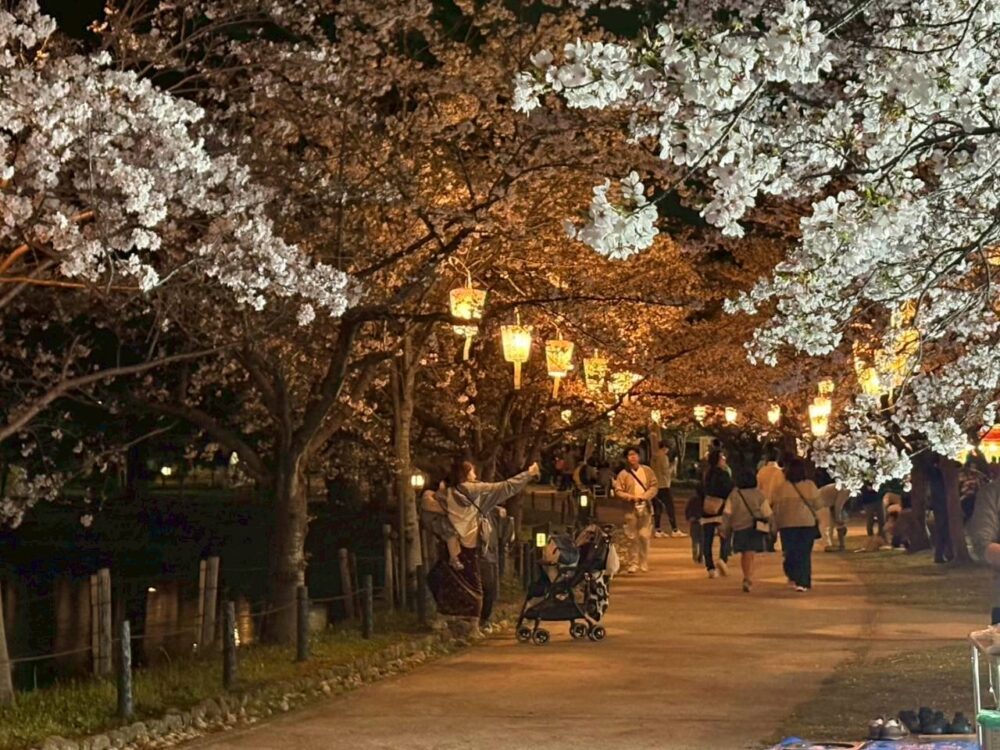 満開の桜と、地域の方々による温かい光の演出に、心からリフレッシュさせていただきました。